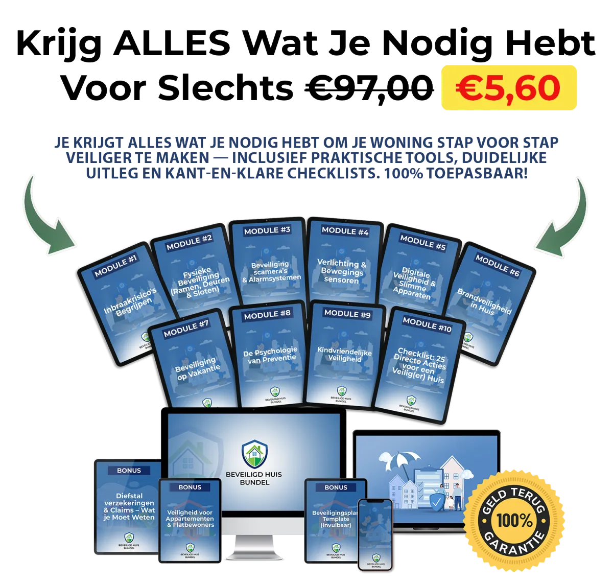 Deze bundel is speciaal gemaakt voor iedereen die zijn woning slim, betaalbaar en zonder gedoe wil beveiligen. Of je nu een huurder bent, huiseigenaar, jong gezin, senior of alleenwonend — als jij je huis veiliger wil maken, dan is dit precies wat je nodig hebt.